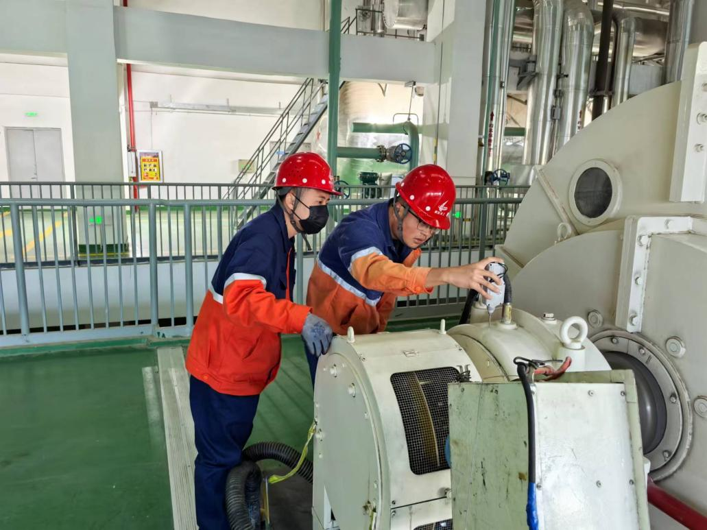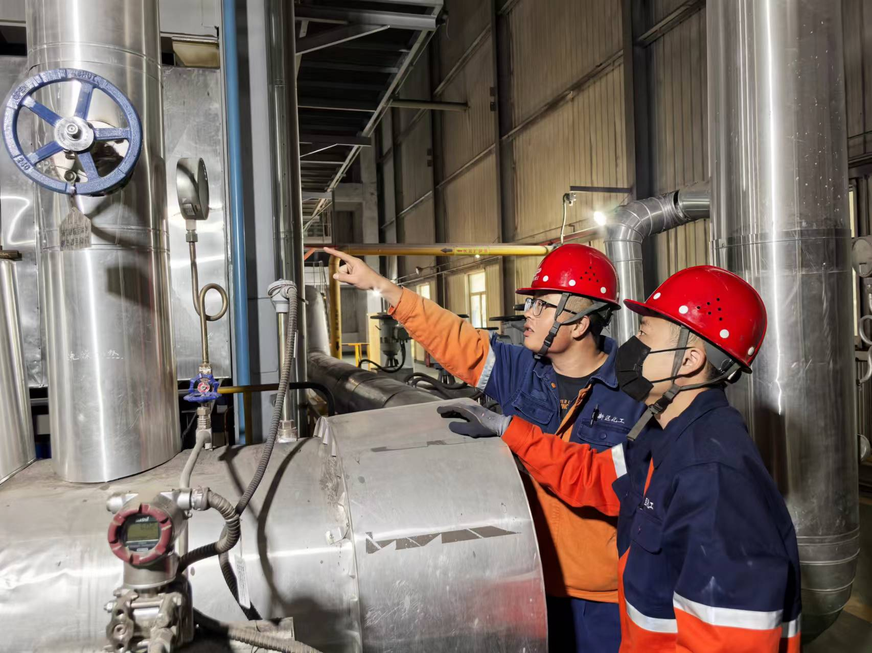 在化工热电公司的集控室内,值班员们紧盯屏幕上的每一组数据,精准控制着各项参数,通过调节阀门、变频器等设备,实现给水流量、蒸汽压力、排烟温度的合理调整。与此同时,节日期间还强化了燃料分析及数据检测工作,确保燃料的热值、水分、灰分等均在安全值内,有效避免因燃料质量波动影响燃烧效率和负荷稳定性。为确保电网的安全稳定运行,在生产现场巡检们对设备进行着细致入微的检查和维护,用专业的技能为机组的安全运行保驾护航。