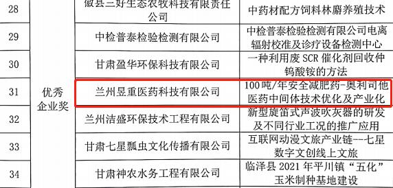 近日,从第十一届中国创新创业大赛(甘肃赛区)组委会获悉,兰州新区专精特新化工产业孵化基地的两家入驻企业——甘肃峻茂新材料科技有限公司和兰州昱重医药科技有限公司分别荣获第十一届中国创新创业大赛(甘肃赛区)优秀企业奖。