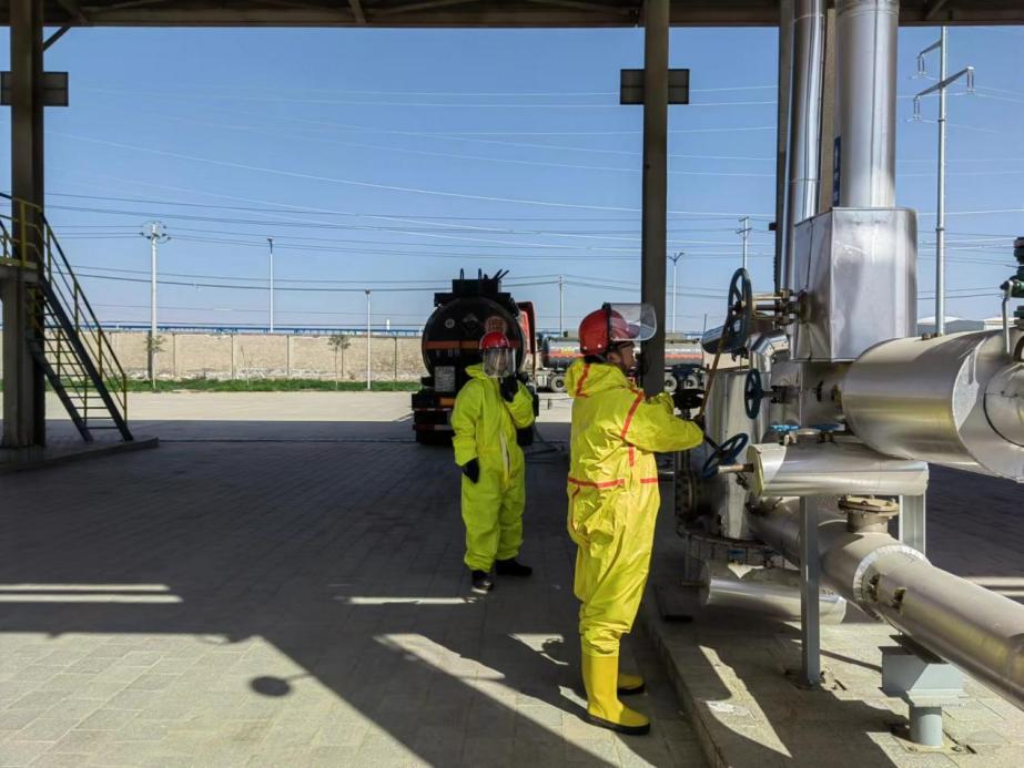 化工商贸公司物流园货场的装卸外操人员因工作需要,须与货运外来司机接触,对于这种特殊情况,物流园项目部划定装卸区域和仓库为装置疫情“高风险区”,只有准许人员方可进入。为确保化工园区各生产企业原料及时进厂,化工原材料有序出厂,物流园货场开启“全天候待机”模式,这两个区域的在岗员工全部是24小时全天候值班。不管是深夜还是清晨,只要接到装卸车任务,他们组织有序,行动迅速,第一时间赶到装卸现场,完成酸碱装卸作业。