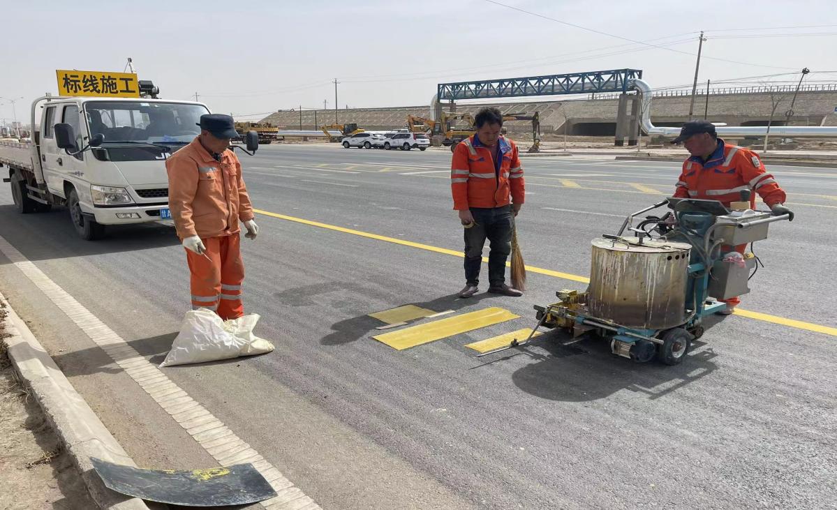 近日,石化集团二级子公司—久泰物业管理有限公司组织开展危化品车辆专用车道路面标线施工工作,完成园区纬五十四路路面标线画字570平方米。进一步规范危化品车辆行驶轨迹,减少危化品车辆混行的安全隐患,更好地服务于园区安全出行,确保干线道路安全畅通