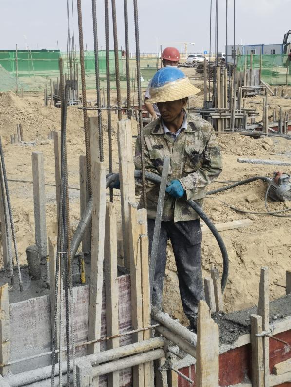 来到甘肃朗玛旗云科技有限公司7500吨农药原药及中间体项目建筑工地现场,工人们正辛勤地忙碌着,扎钢筋、搭脚手架、搬木料、砌墙面……在一幢在建的车间施工现场,工人们正忙着装模板,每颗钉子钉下去都伴随着他豆般大小的汗水“我们每天早上7点多上班,中午11点多下班,中午还有一段时间午休。虽然一身都是湿透的,但是为了确保工程的进度,我们选择坚守岗位。”建筑工人张师傅说。