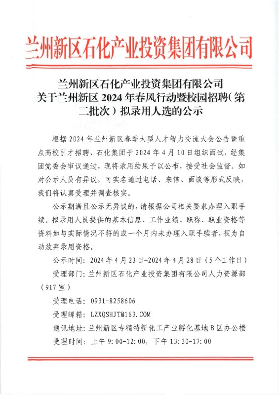 乐鱼官方端网站登录入口-乐鱼leyu(中国) 关于兰州新区2024年春风行动暨校园招聘(第二批次)拟录用人选的公示