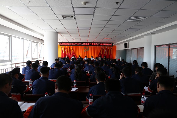 2020年8月10日上午,兰州新区石投集团举行2020年产业工人技能提升暨新员工培训开班仪式,新区党群工作部部长柴守强,集团公司副总经理姜锦,副总经理齐铁盾,副总经理高厚奇,秦川园区管委会委员、主任助理豆永良,新区党群工作部工会工作科科长狄生俊,工会工作科副科长郭凌冰出席开班仪式。