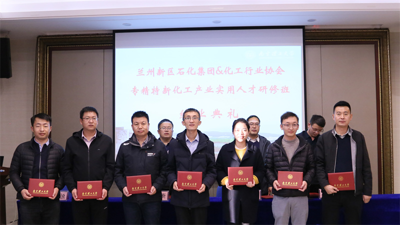 12月3日下午,由新区石化集团与南京理工大学继续教育学院合作举办的“兰州新区专精特新化工产业实用人才研修班”顺利结业。结业仪式上,为学员颁发了结业证书。