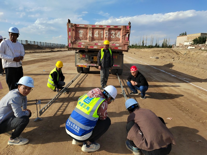 此次路基工程中间交工验收段为经40路(k0+000-k0+730段)、纬51路(K0+580---K1+300段)。交验小组严格按照验收标准和规范,分别对路基弯沉、压实度、高程、宽度等指标进行了检查验收,经现场检测,各项指标均符合设计图纸及规范要求,具备转入下道工序的施工条件,验收顺利通过。此次路基分段顺利交验,为后续路基交验奠定了基础,也为路面施工创造了良好条件。