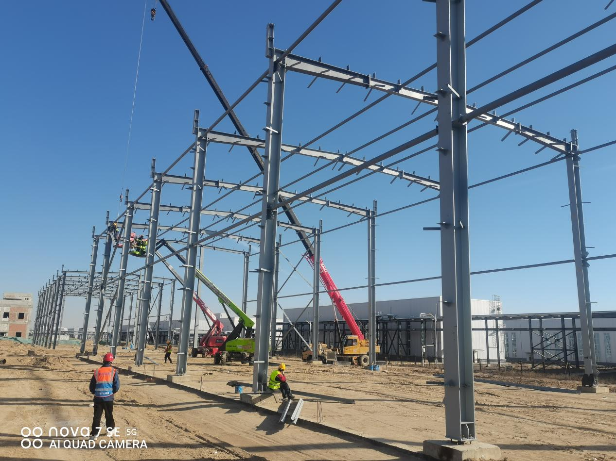 近日,为了确保入驻企业能够按期顺利开工入驻,兰州新区专精特新化工产业孵化基地项目C区三期项目积极调配人力、物力,克服了冬季施工的种种困难,大干快上抢抓甲类车间钢结构安装进度,从原材料采购、工厂加工到现场安装,全面督促施工单位在冬季高质量完成车间钢结构安装工作。